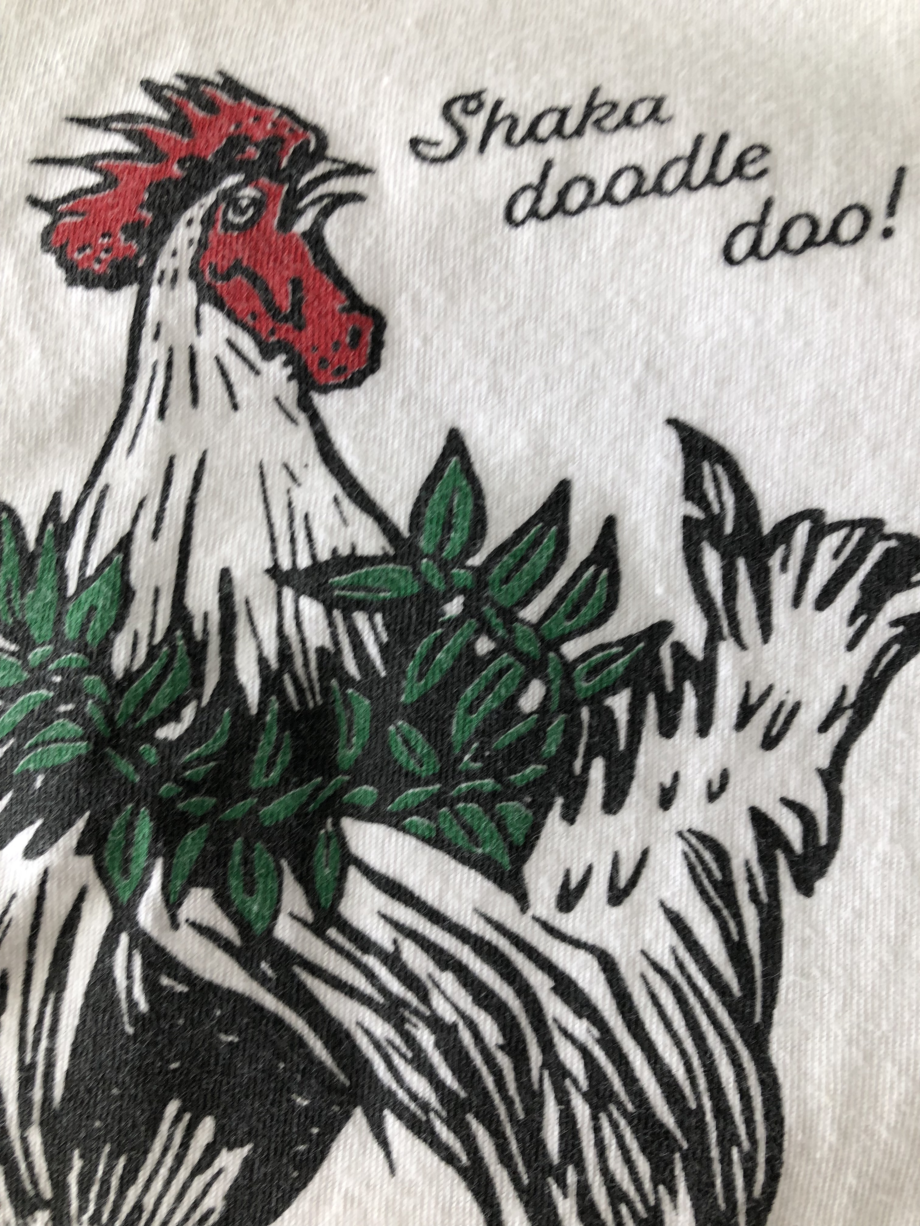 I’ve shared this picture on a previous post. I’m at Beach Haus with my family for my birthday. My wife and girls gave me that t-shirt as one of my gifts. Look closely. Yes, it’s a rooster. Not only is it a rooster, but the shirt is from North Shore Surf Shop – a legendary store on my favorite shore.