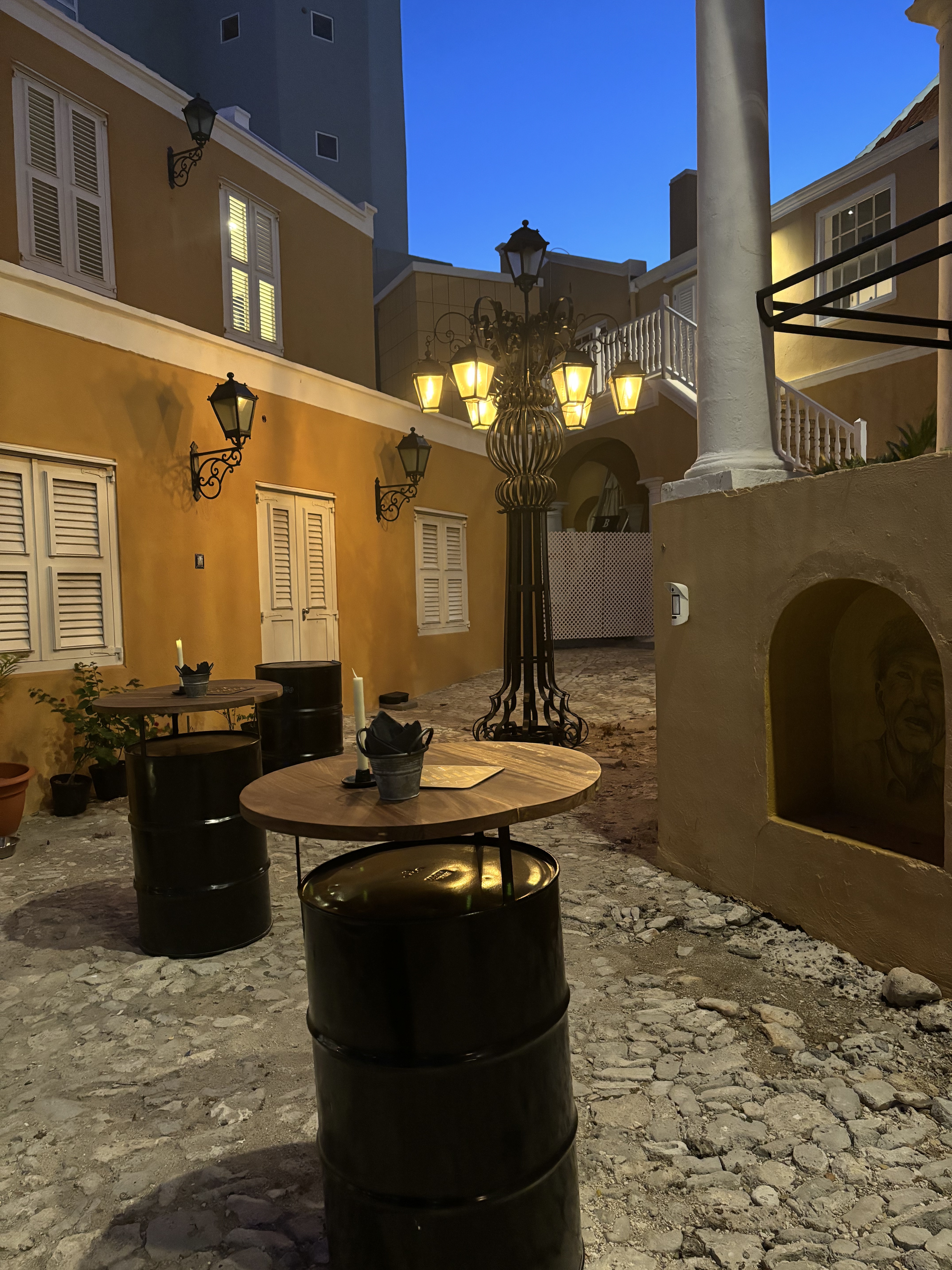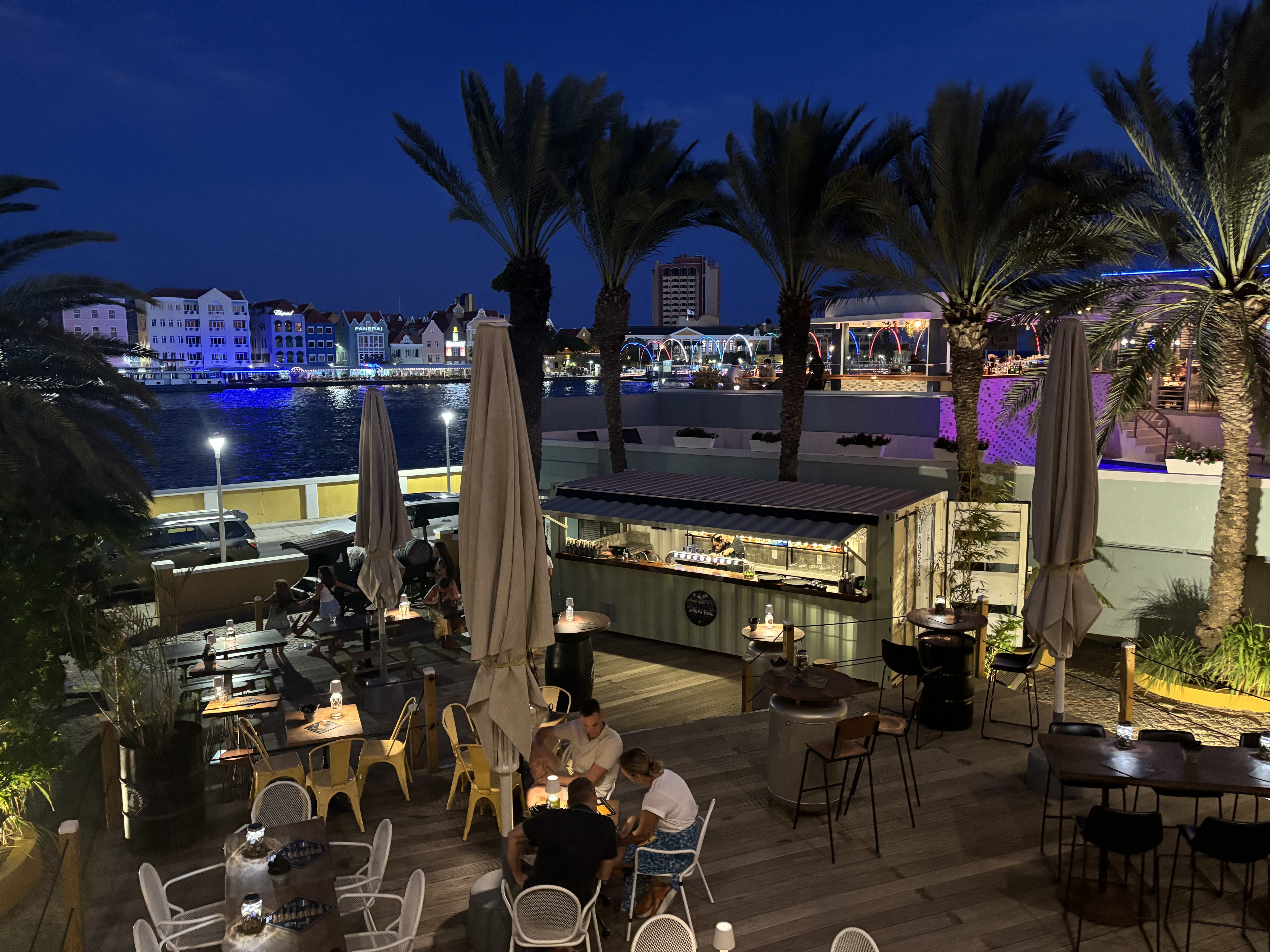 Swinging Old Lady sits right on St. Anna Bay and close to the Queen Emma Bridge. The bridge itself is something to behold. It floats. Yes, floats. And it sits low to the water, so the bridge needs to open for boats to pass. In order to open, the bridge is floated so that it’s parallel to the bay’s walls. Boats scoot by and the bridge floats closed. Pedestrians are on the bridge the entire time. If the alarm sounds while you’re crossing, you stay on, take the ride, and finish crossing when the bridge is back to its regular span.